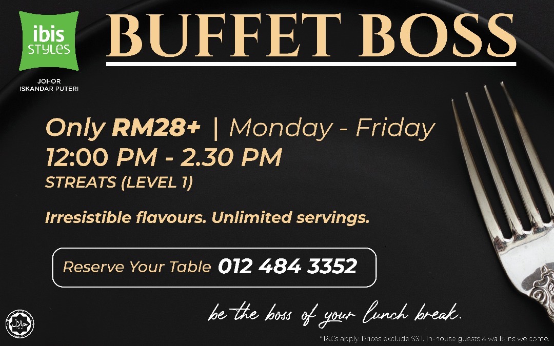 Buffet Boss di ibis Styles Johor Bahru: Nikmati Buffet Lunch Serendah RM28+