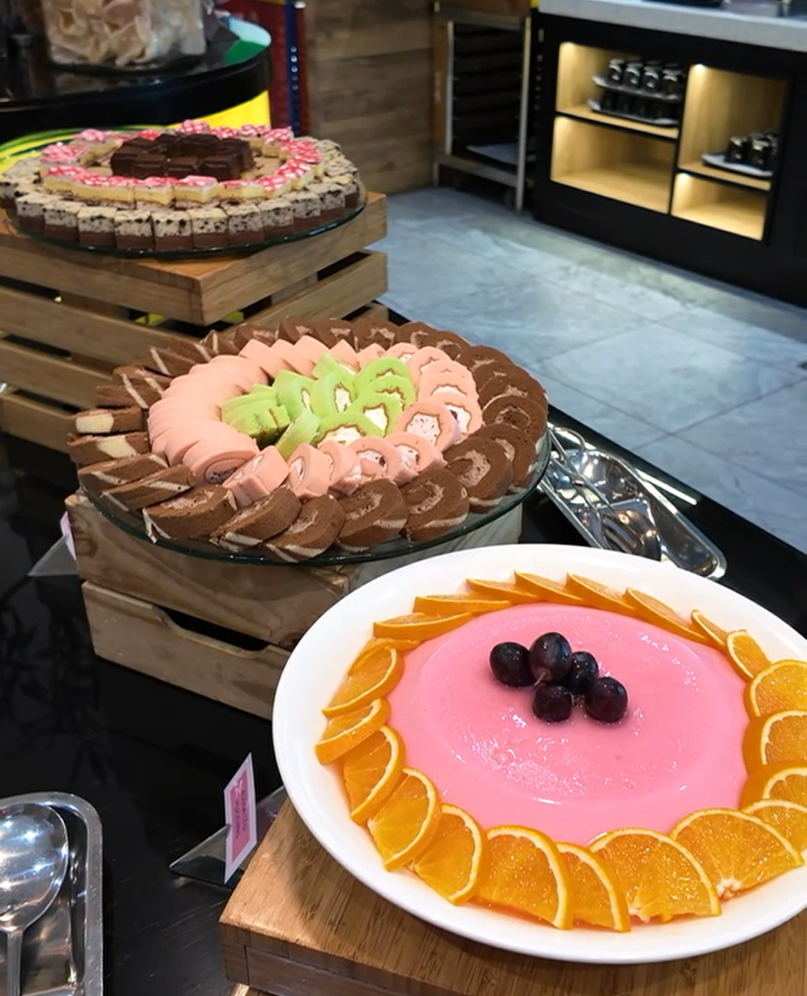 • Pelbagai pencuci mulut seperti kuih-muih tradisional, kek, buah-buahan segar, AbC dan puding.