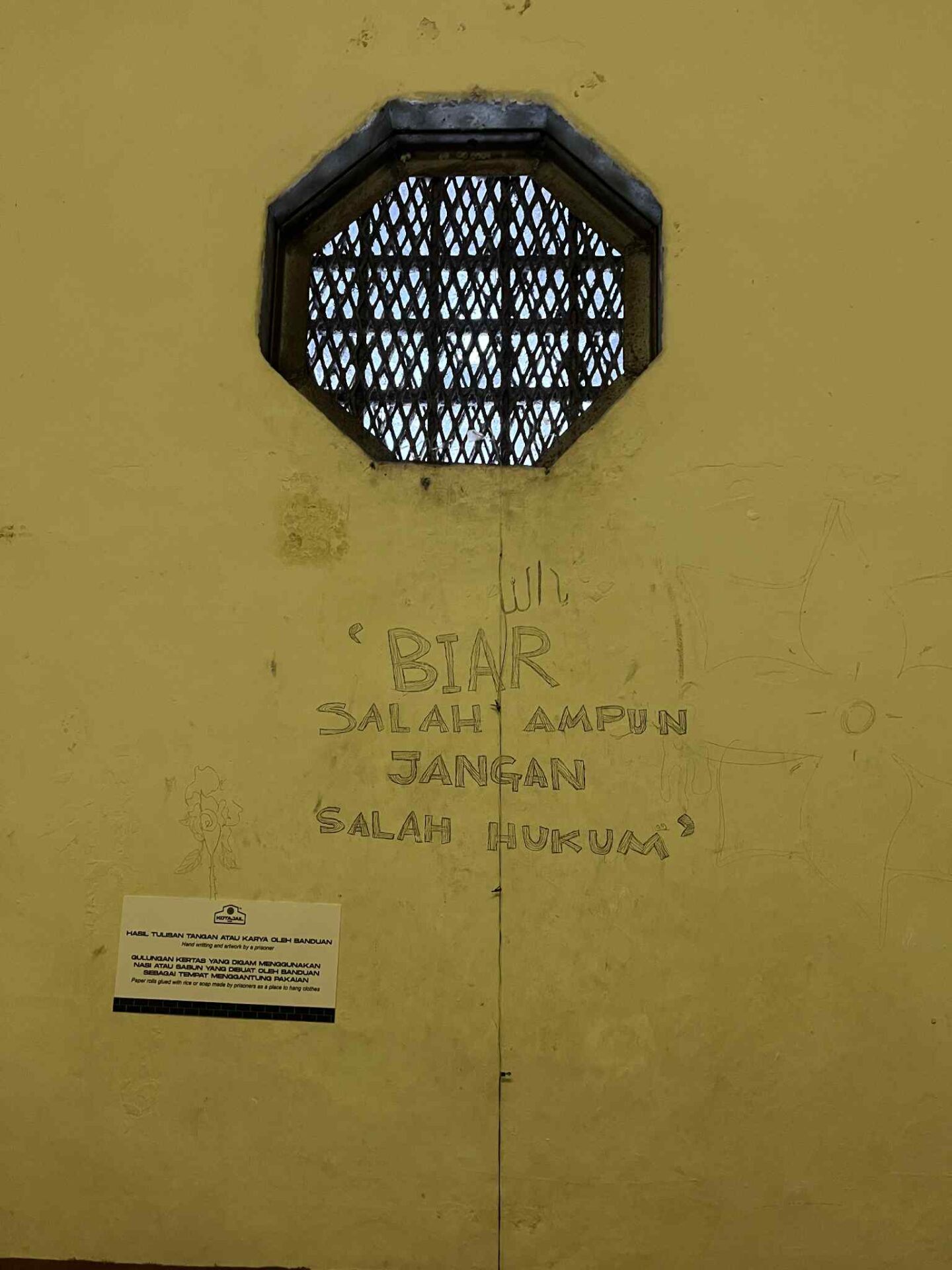 Kami berjalan menyusuri lorong sempit dengan jeriji besi yang seakan-akan “bercakap” dengan sendirinya. Saya sendiri terasa seram sejuk membayangkan bagaimana suasana di sini dahulu ketika ia masih beroperasi. Bayangkan ratusan banduan hidup bersama dalam ruang yang terbatas, dengan rutin ketat setiap hari.