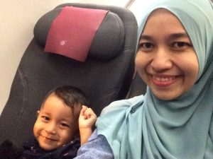 Alhamdulillah hari yang dinantikan telah tiba. Fareeq tak sabar nak jumpa papa. Mama pun sama. Dalam masa yang sama Lisa berdebar juga sebab first time dengan Fareeq naik kapal terbang tanpa husband. Perjalanan agak lama dalm 7 jam.