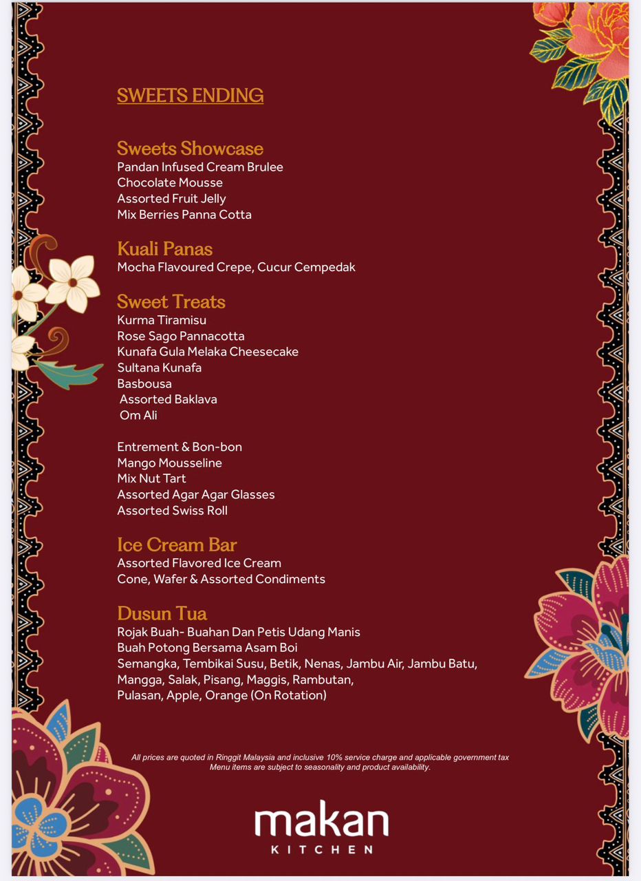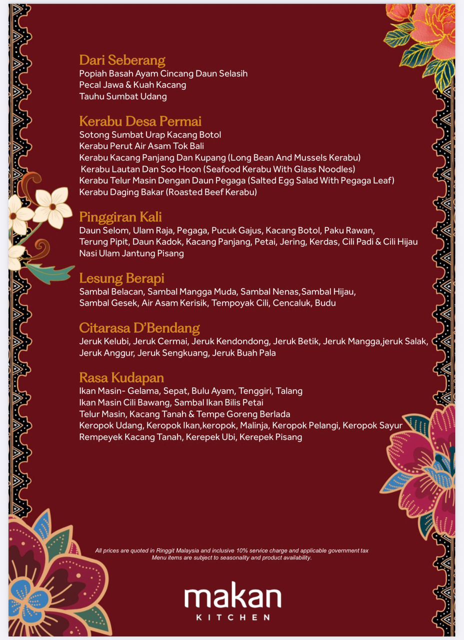 Konsep buffet ini tidak terlalu mengejar kuantiti, sebaliknya memberi fokus kepada: