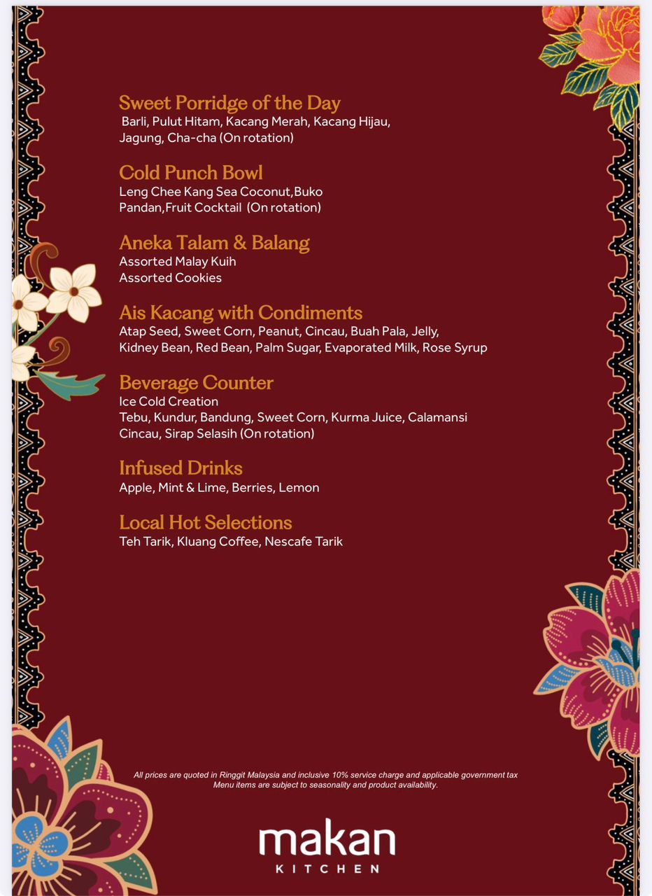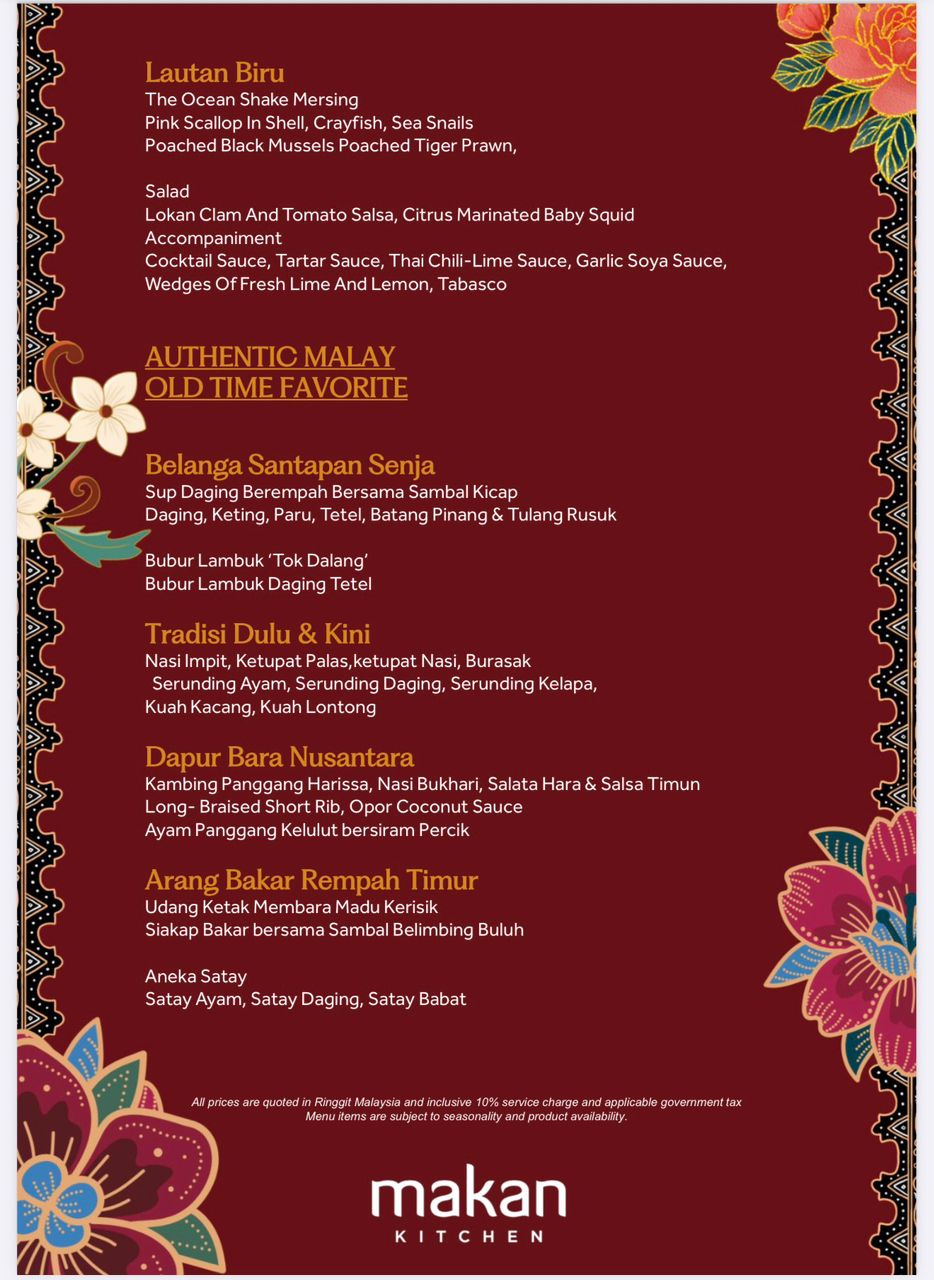 Menu ini memberi sentuhan nostalgia dan rasa βhome-cookedβ walaupun berada dalam suasana hotel bertaraf antarabangsa.
